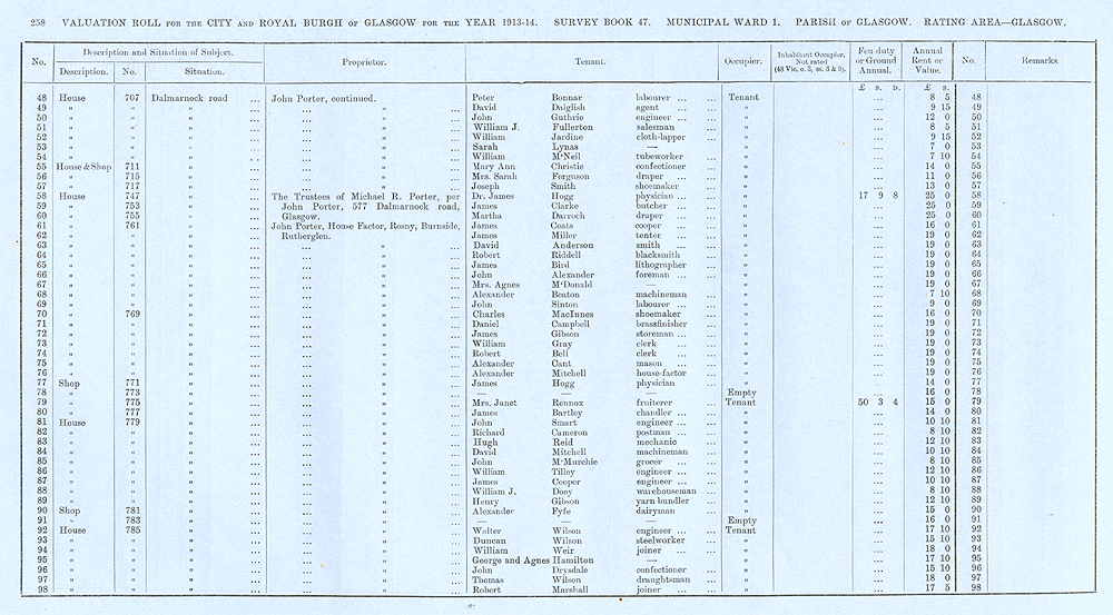 Glasgow Valuation Roll VR 1913-14, Ward 01, p258