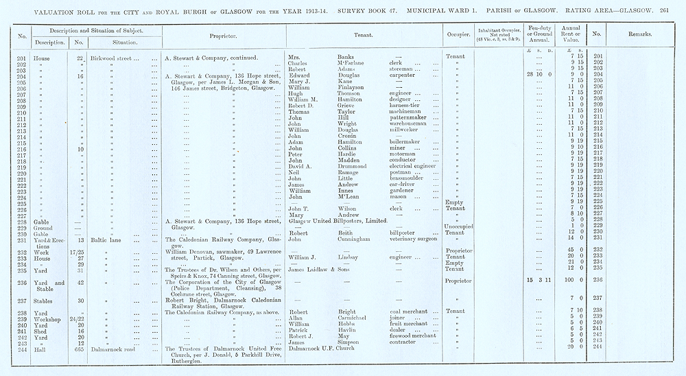 Glasgow Valuation Roll VR 1913-14, Ward 01, p261