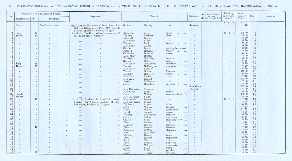 Glasgow Valuation Roll VR 1913-14, Ward 01, p262