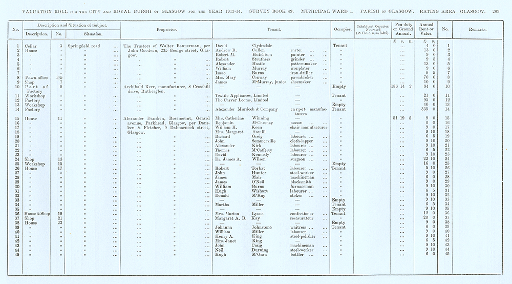 Glasgow Valuation Roll VR 1913-14, Ward 01, p269