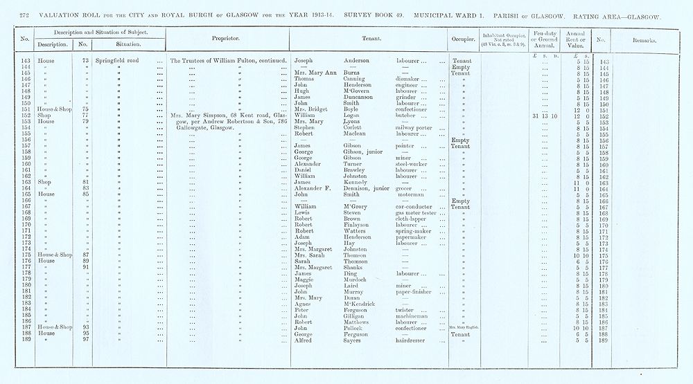 Glasgow Valuation Roll VR 1913-14, Ward 01, p272