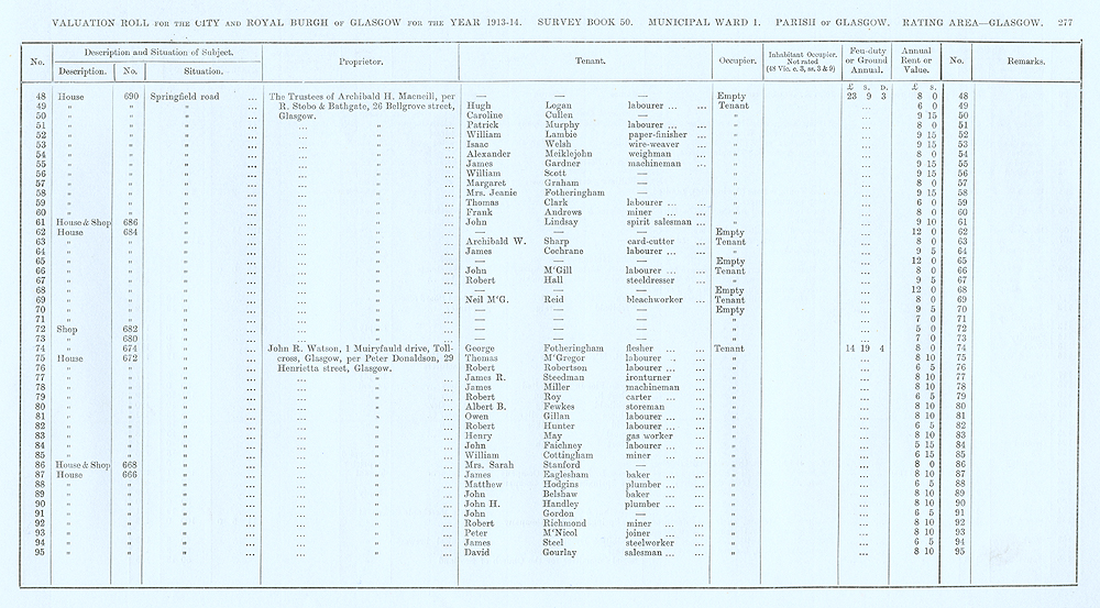 Glasgow Valuation Roll VR 1913-14, Ward 01, p277