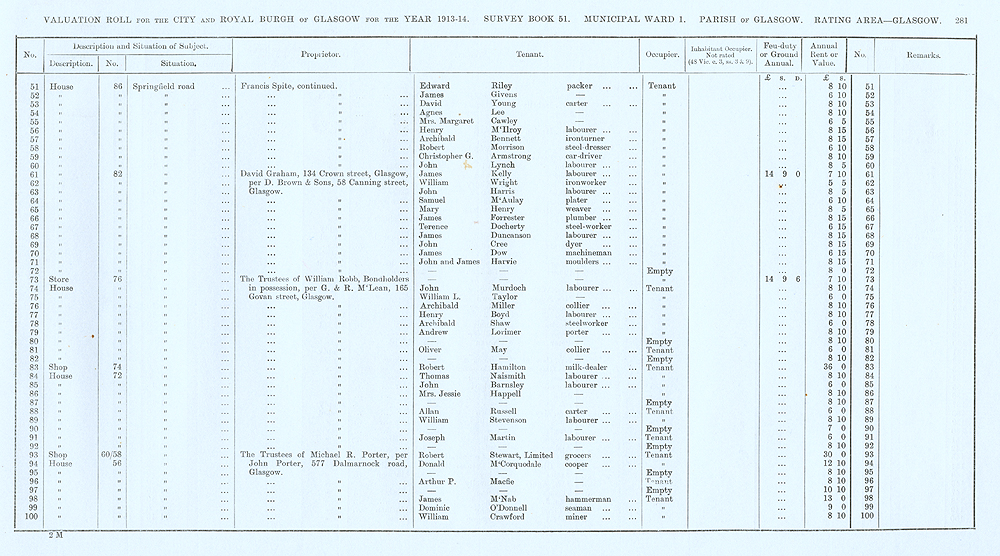 Glasgow Valuation Roll VR 1913-14, Ward 01, p281