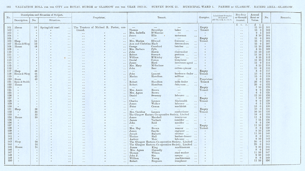 Glasgow Valuation Roll VR 1913-14, Ward 01, p282