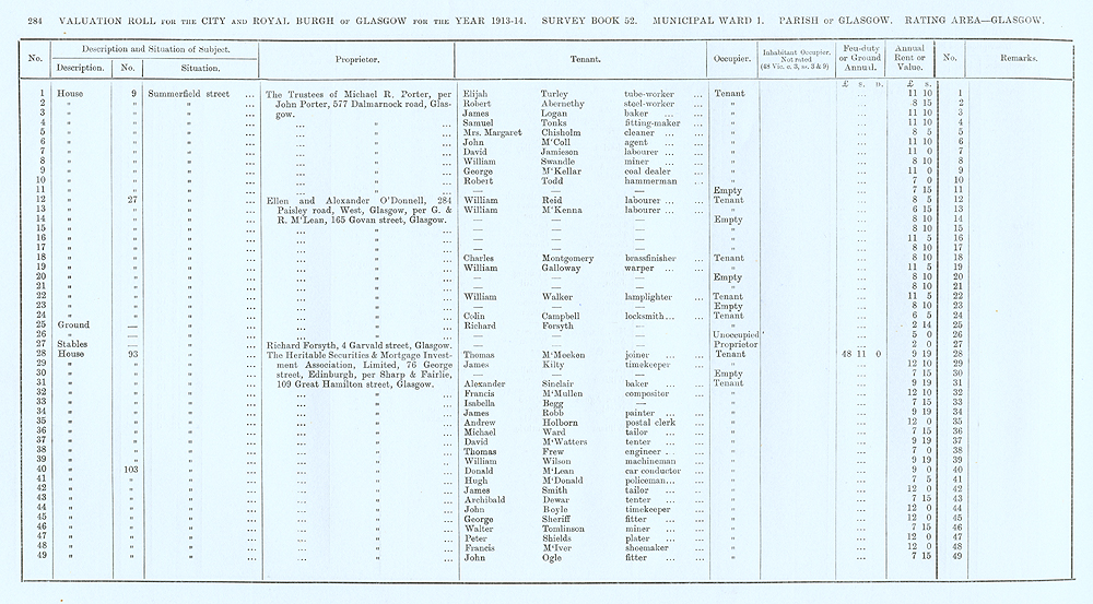 Glasgow Valuation Roll VR 1913-14, Ward 01, p284
