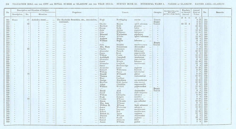 Glasgow Valuation Roll VR 1913-14, Ward 01, p296