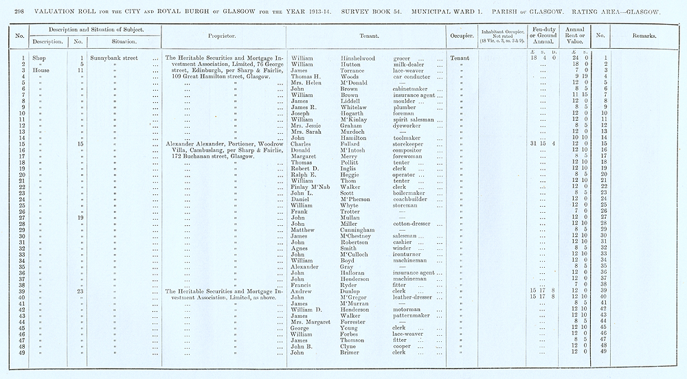 Glasgow Valuation Roll VR 1913-14, Ward 01, p298