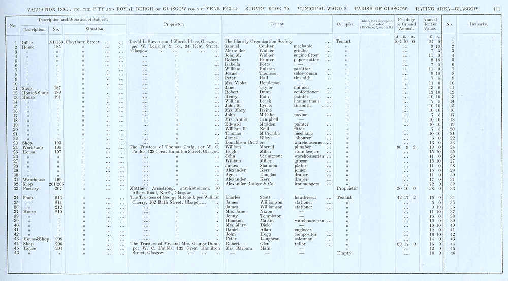 Glasgow Valuation Roll VR 1913-14, Ward 02, p111