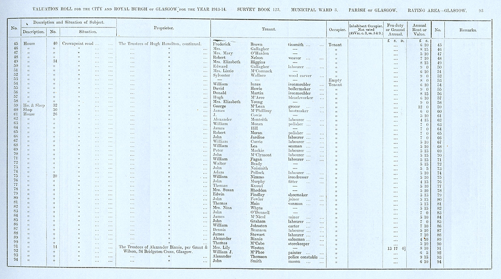Glasgow Valuation Roll VR 1913-14, Ward 03, p093