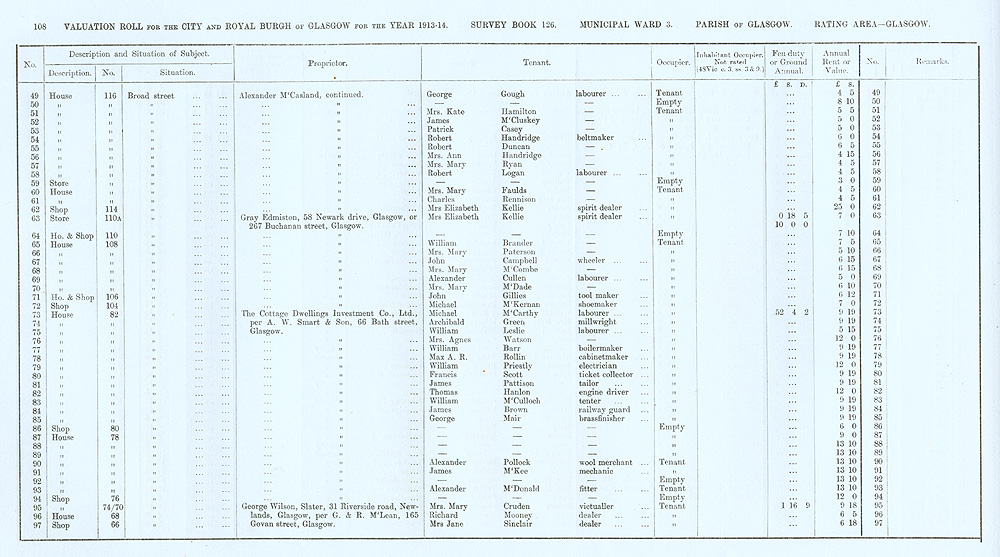 Glasgow Valuation Roll VR 1913-14, Ward 03, p108