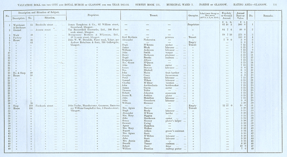 Glasgow Valuation Roll VR 1913-14, Ward 03, p133