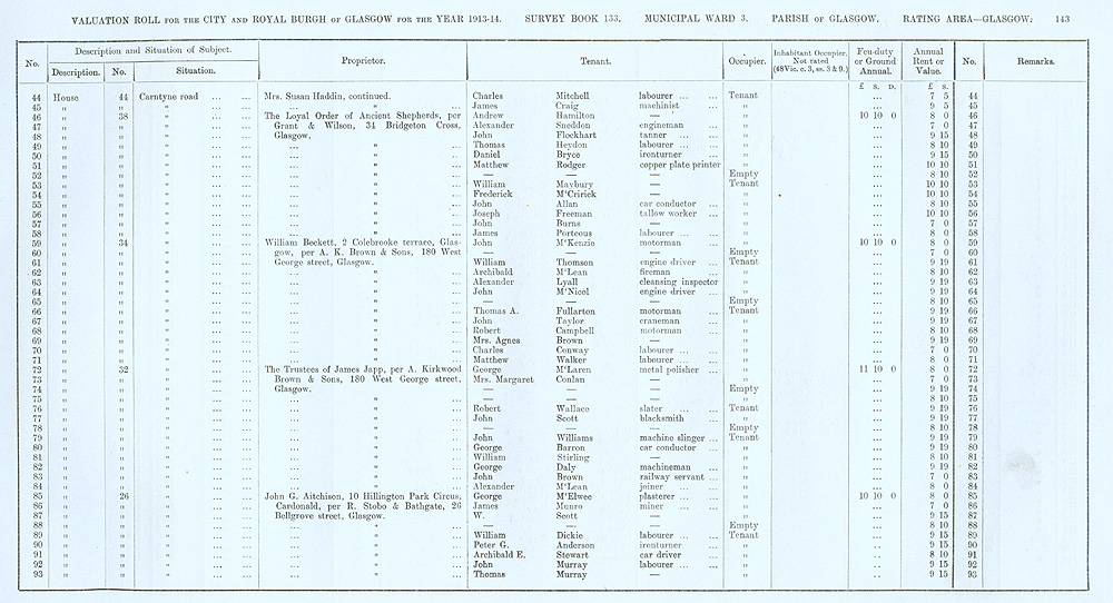 Glasgow Valuation Roll VR 1913-14, Ward 03, p143