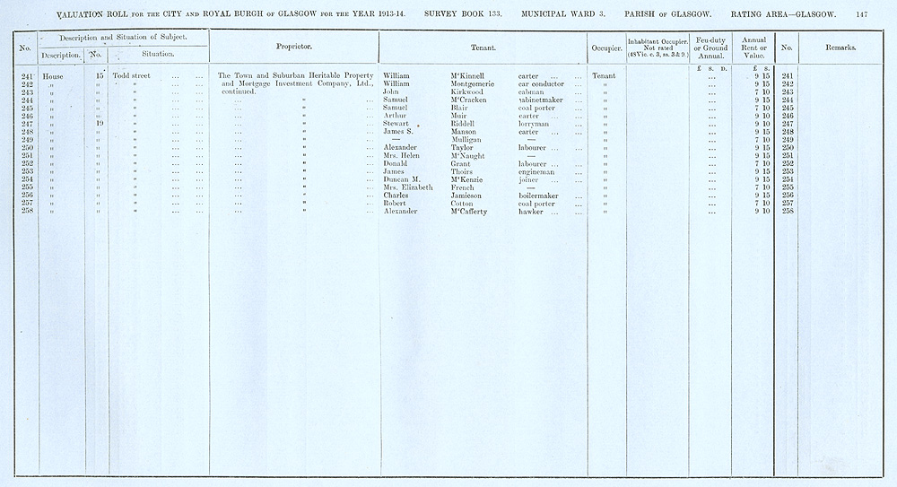 Glasgow Valuation Roll VR 1913-14, Ward 03, p147