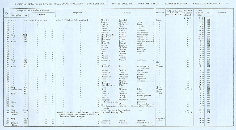 Glasgow Valuation Roll VR 1913-14, Ward 03, p151