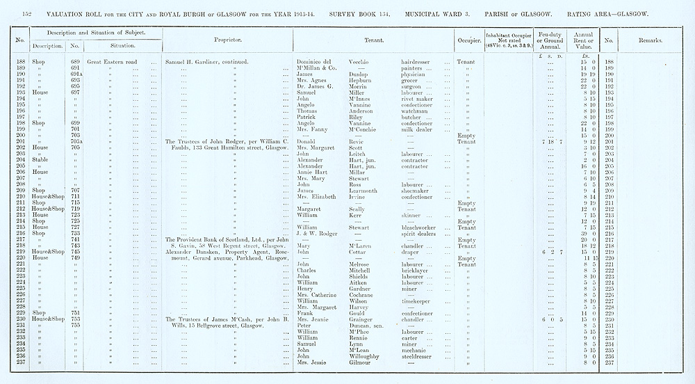 Glasgow Valuation Roll VR 1913-14, Ward 03, p152