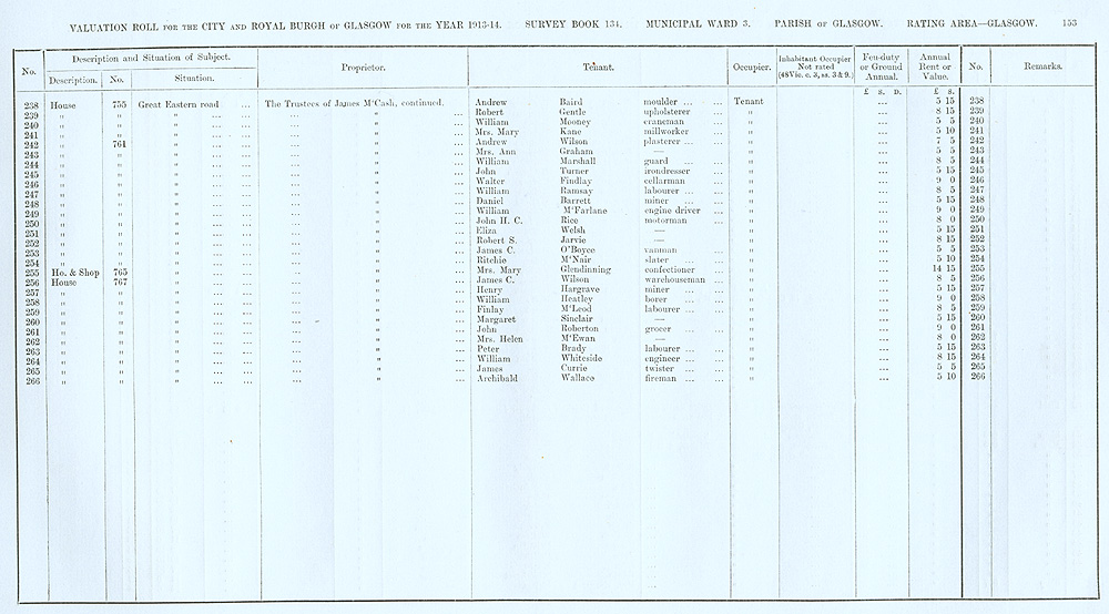 Glasgow Valuation Roll VR 1913-14, Ward 03, p153