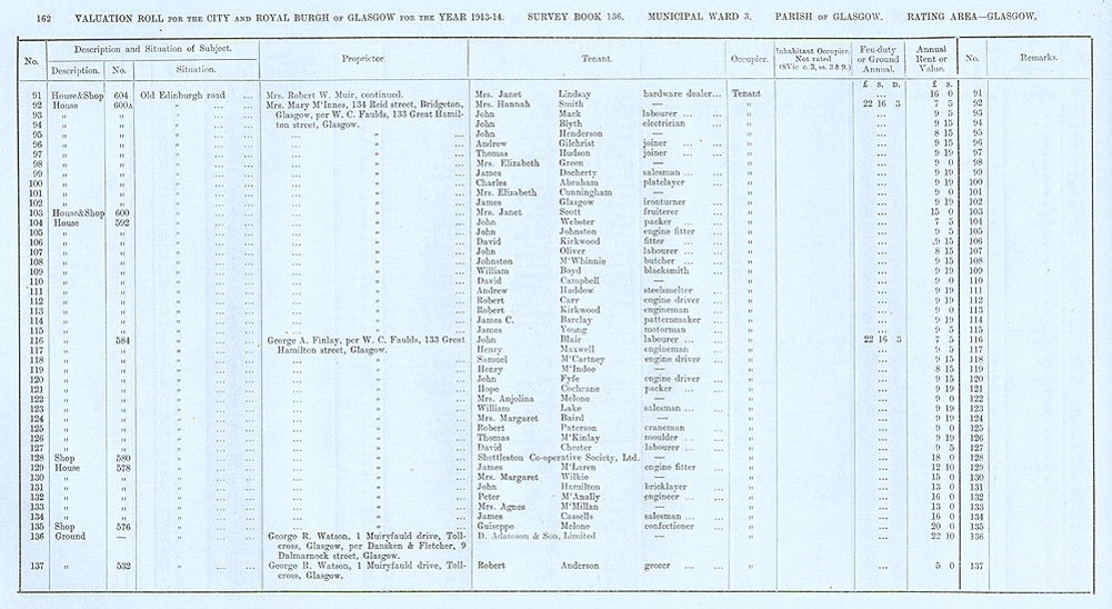 Glasgow Valuation Roll VR 1913-14, Ward 03, p162