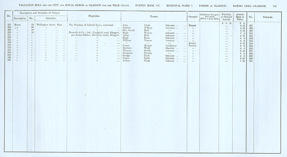 Glasgow Valuation Roll VR 1913-14, Ward 03, p165