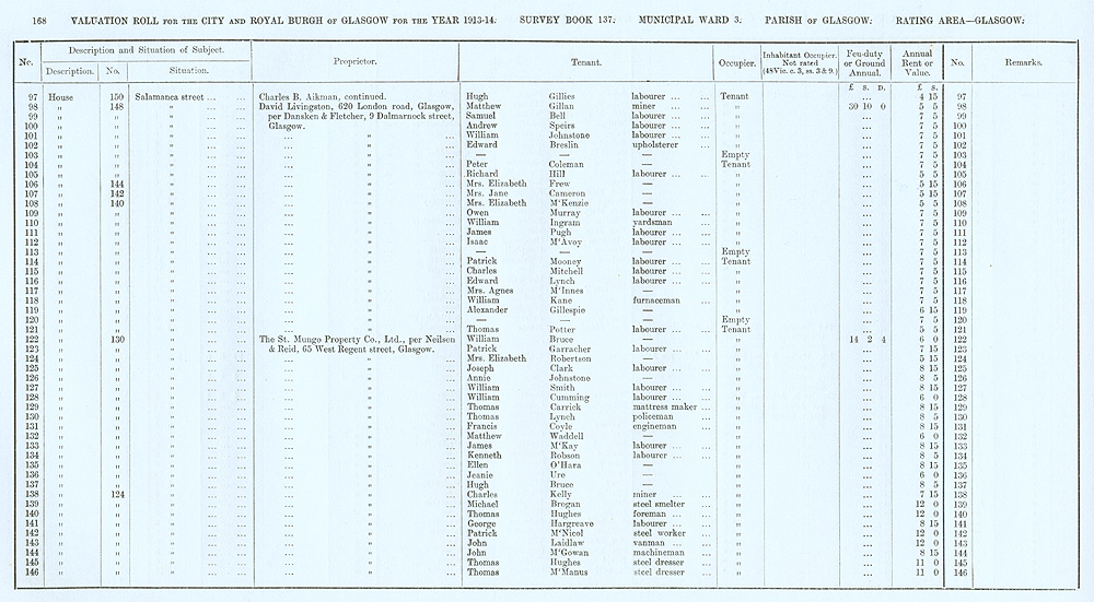 Glasgow Valuation Roll VR 1913-14, Ward 03, p168