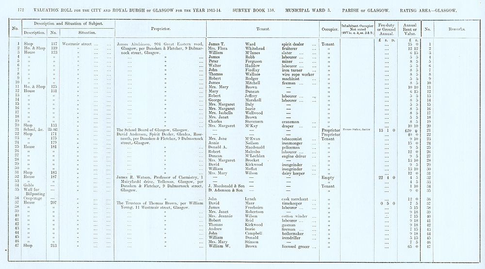 Glasgow Valuation Roll VR 1913-14, Ward 03, p172
