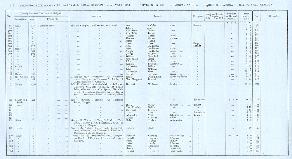 Glasgow Valuation Roll VR 1913-14, Ward 03, p174