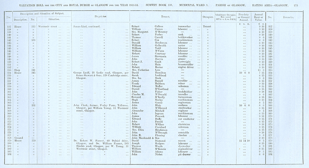 Glasgow Valuation Roll VR 1913-14, Ward 03, p175