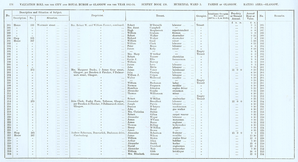 Glasgow Valuation Roll VR 1913-14, Ward 03, p176