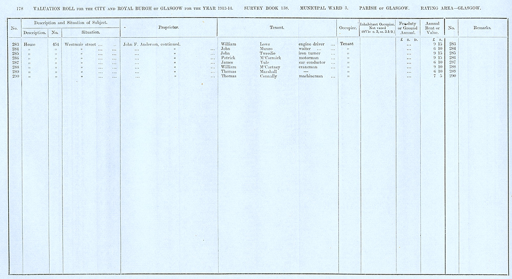 Glasgow Valuation Roll VR 1913-14, Ward 03, p178