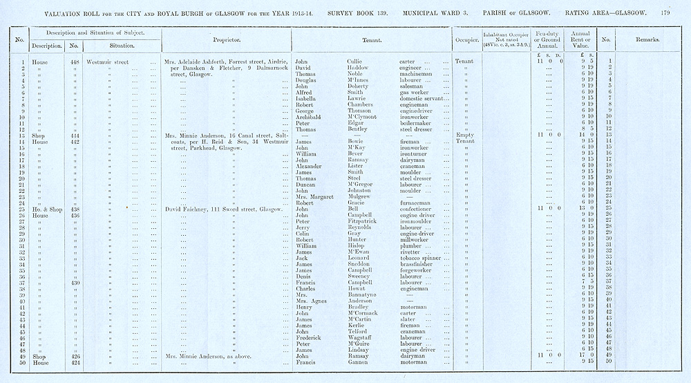 Glasgow Valuation Roll VR 1913-14, Ward 03, p179