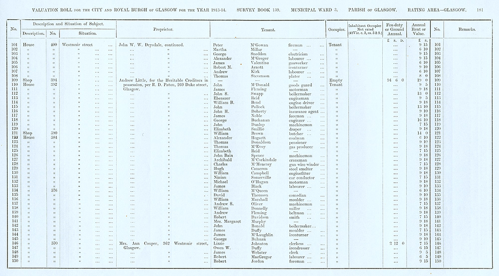 Glasgow Valuation Roll VR 1913-14, Ward 03, p181