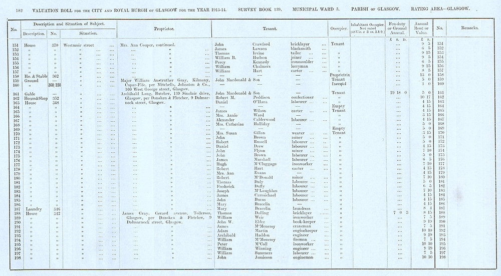 Glasgow Valuation Roll VR 1913-14, Ward 03, p182