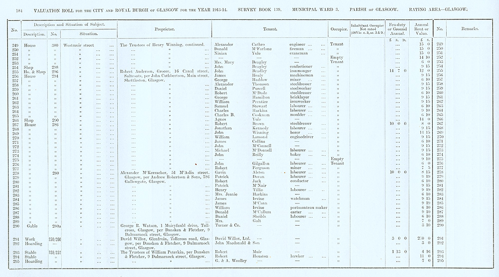 Glasgow Valuation Roll VR 1913-14, Ward 03, p184