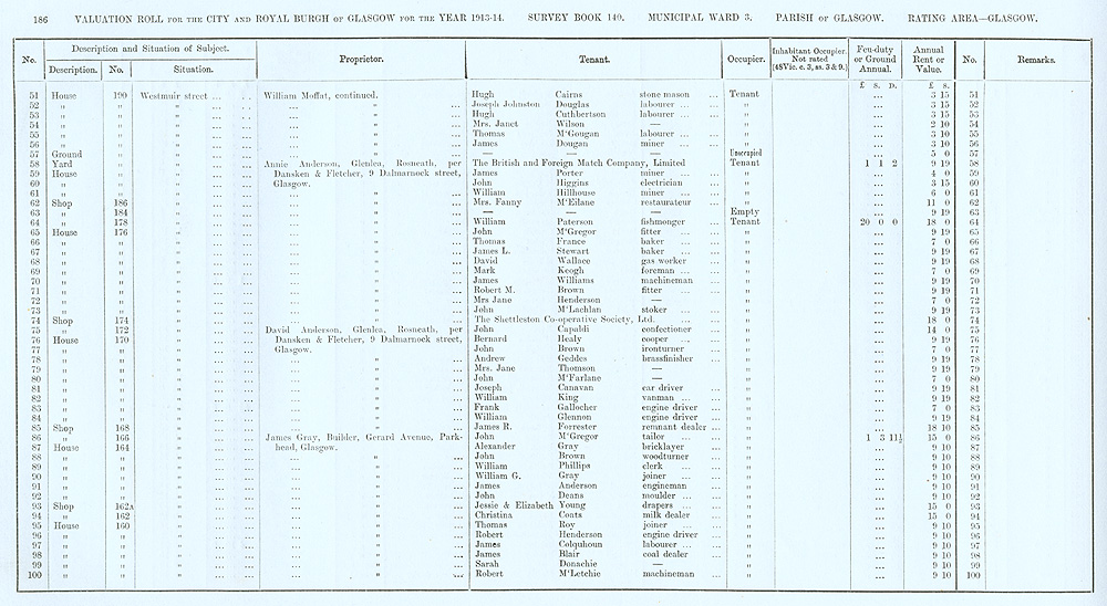 Glasgow Valuation Roll VR 1913-14, Ward 03, p186