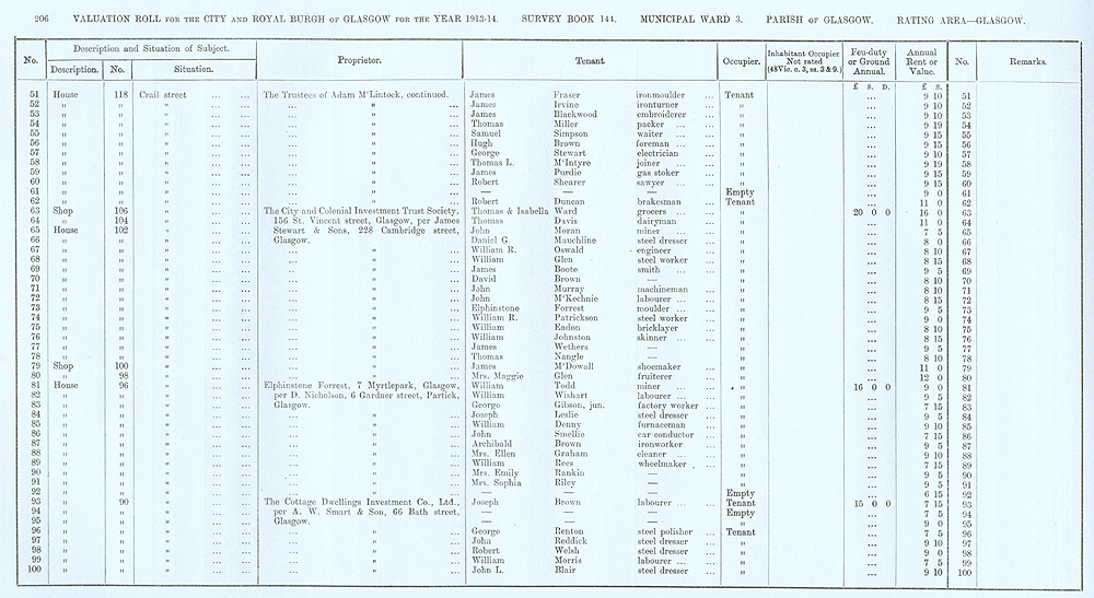 Glasgow Valuation Roll VR 1913-14, Ward 03, p206