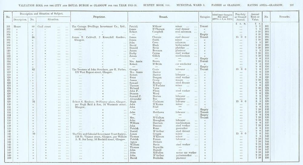 Glasgow Valuation Roll VR 1913-14, Ward 03, p207