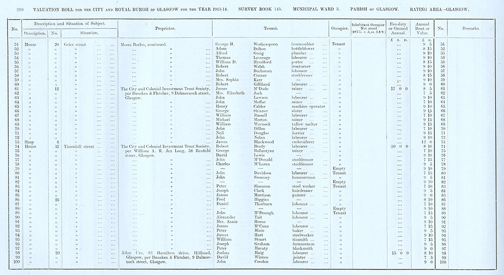 Glasgow Valuation Roll VR 1913-14, Ward 03, p210