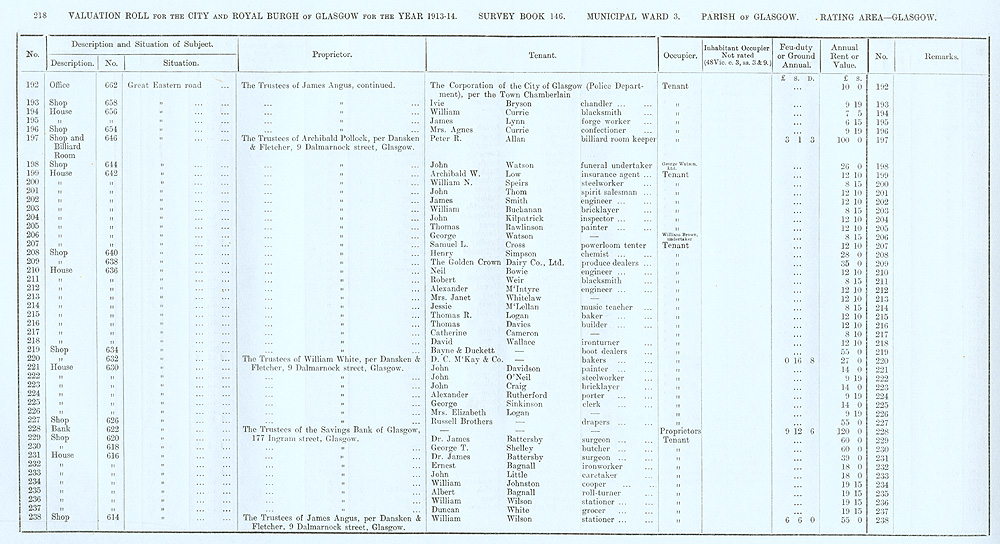 Glasgow Valuation Roll VR 1913-14, Ward 03, p218