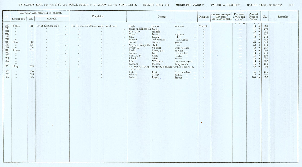 Glasgow Valuation Roll VR 1913-14, Ward 03, p219