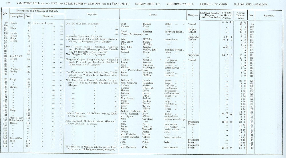 Glasgow Valuation Roll VR 1913-14, Ward 03, p222