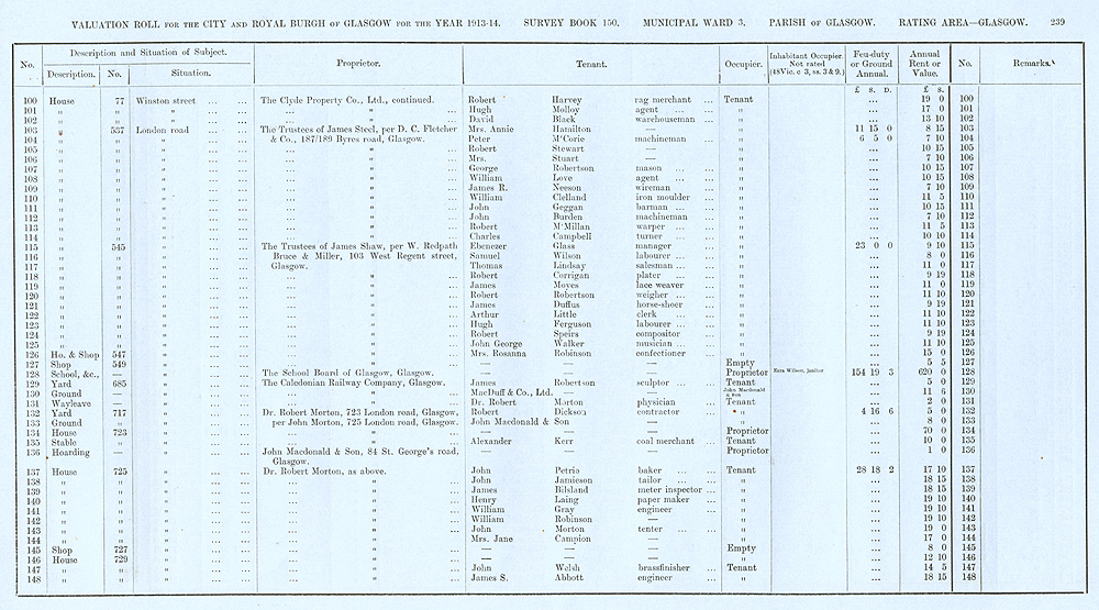 Glasgow Valuation Roll VR 1913-14, Ward 03, p239