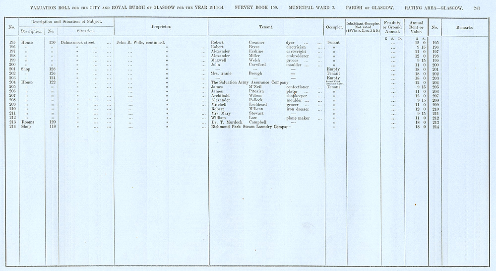 Glasgow Valuation Roll VR 1913-14, Ward 03, p241