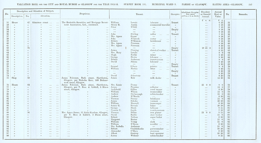 Glasgow Valuation Roll VR 1913-14, Ward 03, p243