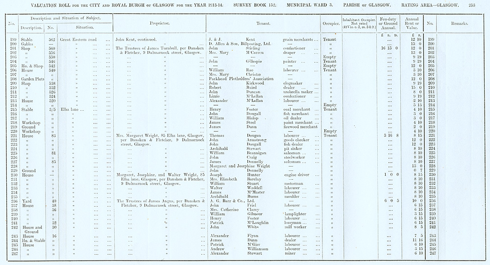 Glasgow Valuation Roll VR 1913-14, Ward 03, p253