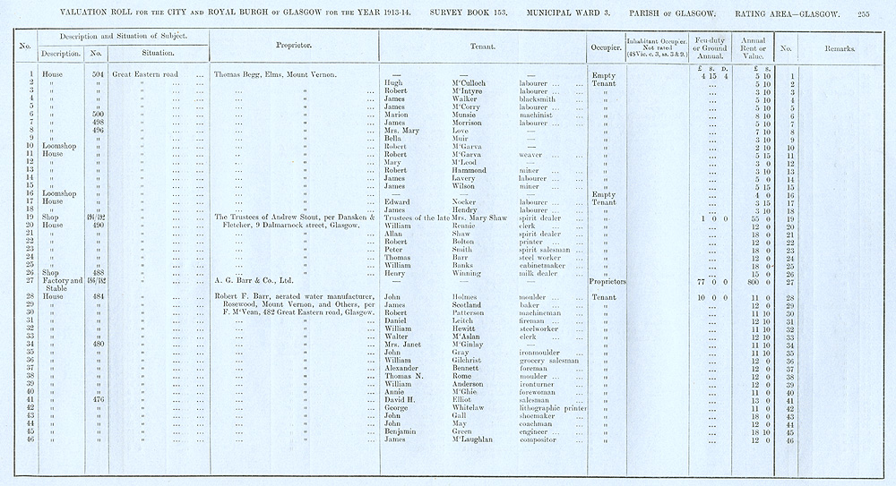 Glasgow Valuation Roll VR 1913-14, Ward 03, p255