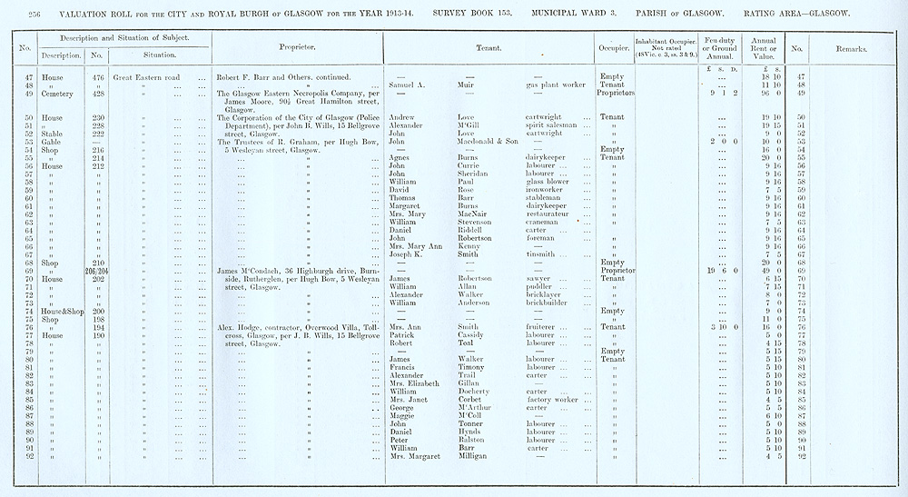 Glasgow Valuation Roll VR 1913-14, Ward 03, p256