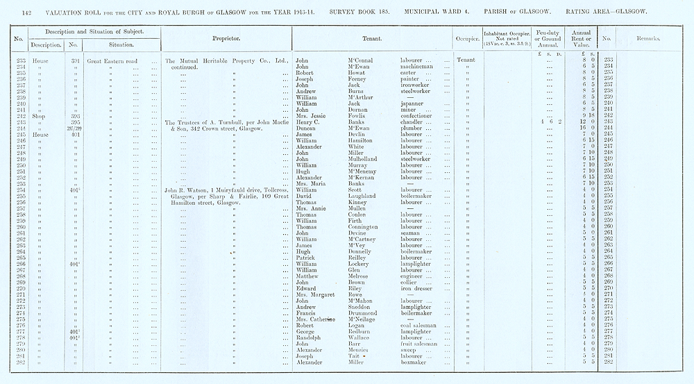 Glasgow Valuation Roll VR 1913-14, Ward 04, p142