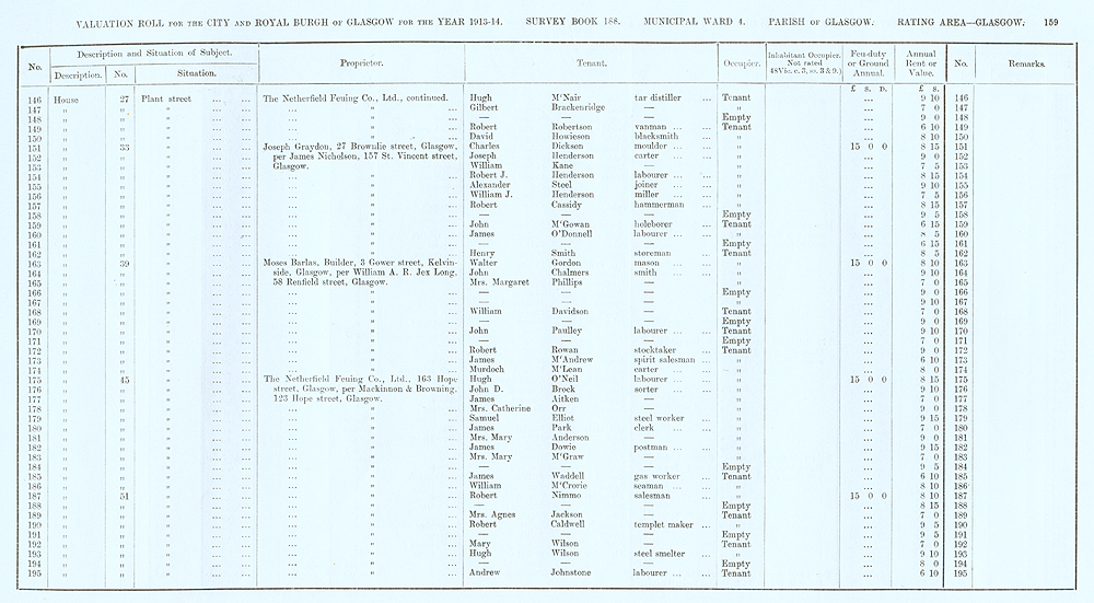 Glasgow Valuation Roll VR 1913-14, Ward 04, p159