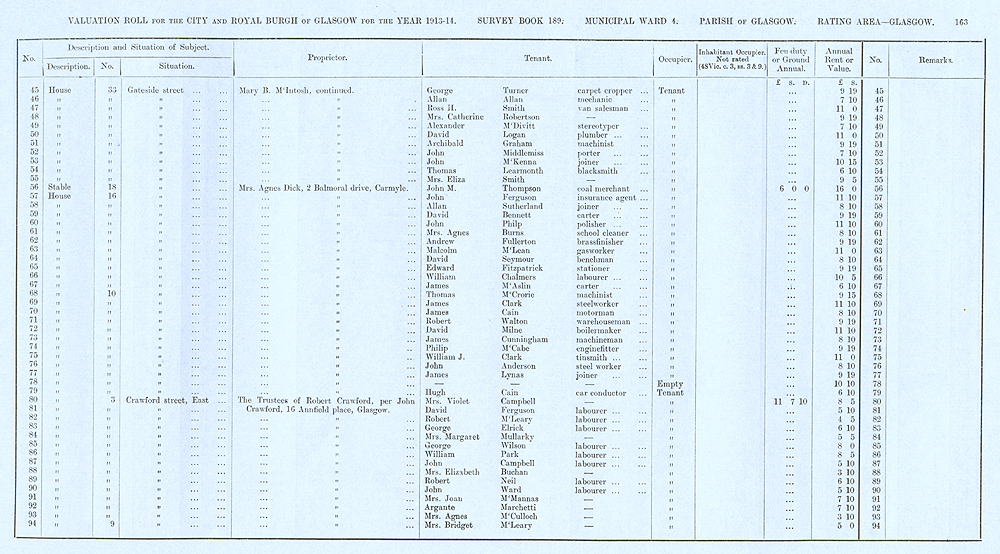 Glasgow Valuation Roll VR 1913-14, Ward 04, p163