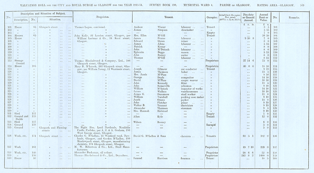 Glasgow Valuation Roll VR 1913-14, Ward 04, p169