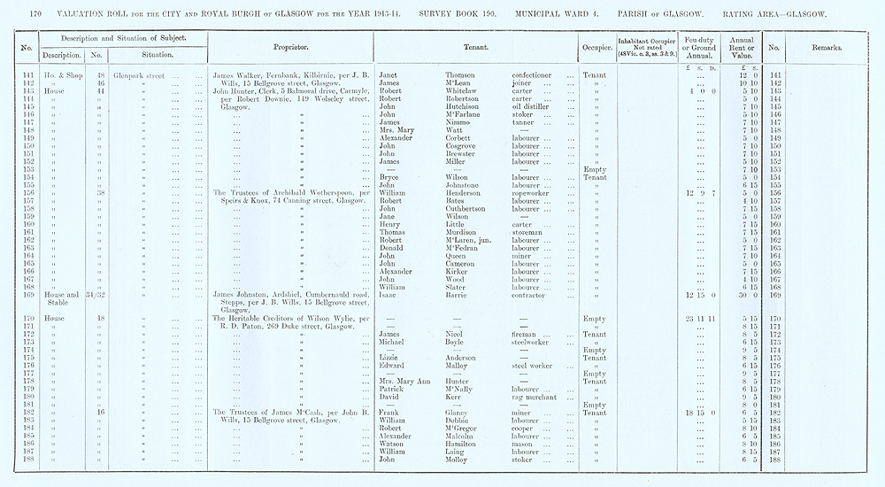 Glasgow Valuation Roll VR 1913-14, Ward 04, p170